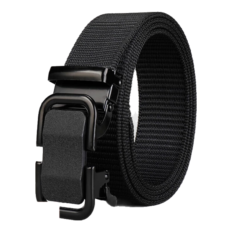 港风战术机能自动工装腰带休闲帆布尼龙年轻人皮带军训裤带裤腰带 黑色 120cm