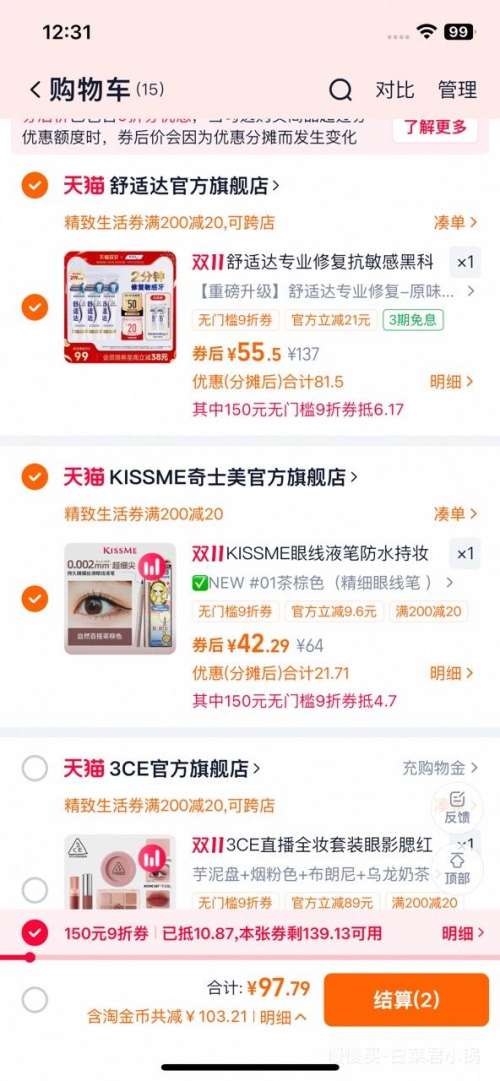 商品到手价55.5元包邮+1370淘金币(需领券),根据小编提供的优惠信息(优惠券+满130减27券+88vip双11无门槛9折 开门红消费券 至高抵(150/500)+凑单品(可退)+满200减20元精致生活券+慢津贴1元+使用1元购140减25券可做到更低价),下单1件。好价不错过,感兴趣的朋友可以试试!