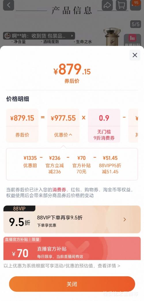 商品到手价879.15元,根据小编提供的优惠信息(优惠券+直播间优惠70元+88vip双11无门槛9折 开门红消费券 至高抵(150/500)+慢津贴1.01元),下单1件。好价不错过,感兴趣的朋友可以试试!