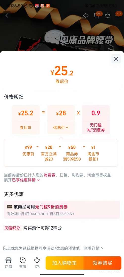 商品到手价25.2元(需领券),根据小编提供的优惠信息(优惠券+满59减50+88vip双11无门槛9折 开门红消费券 至高抵(150/500)+慢津贴1元),下单1件。好价不错过,感兴趣的朋友可以试试!