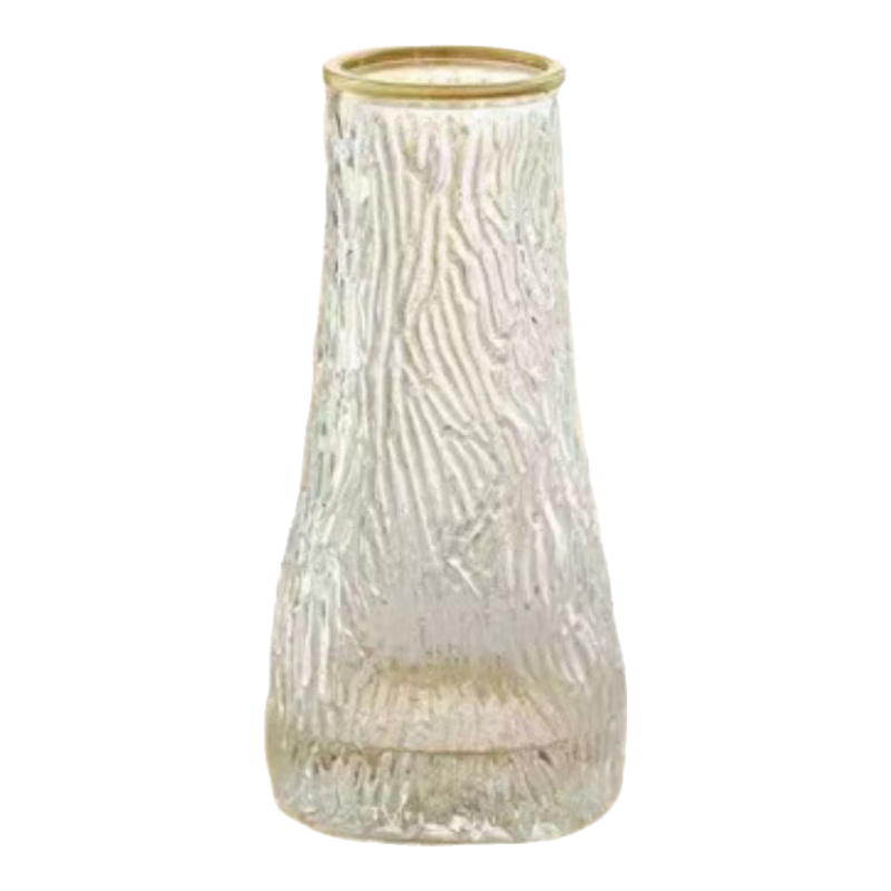 玻璃花瓶透明植物插花瓶水培容器大花瓶装饰客厅摆件 透明水波纹(17*5.5*8) 1个装