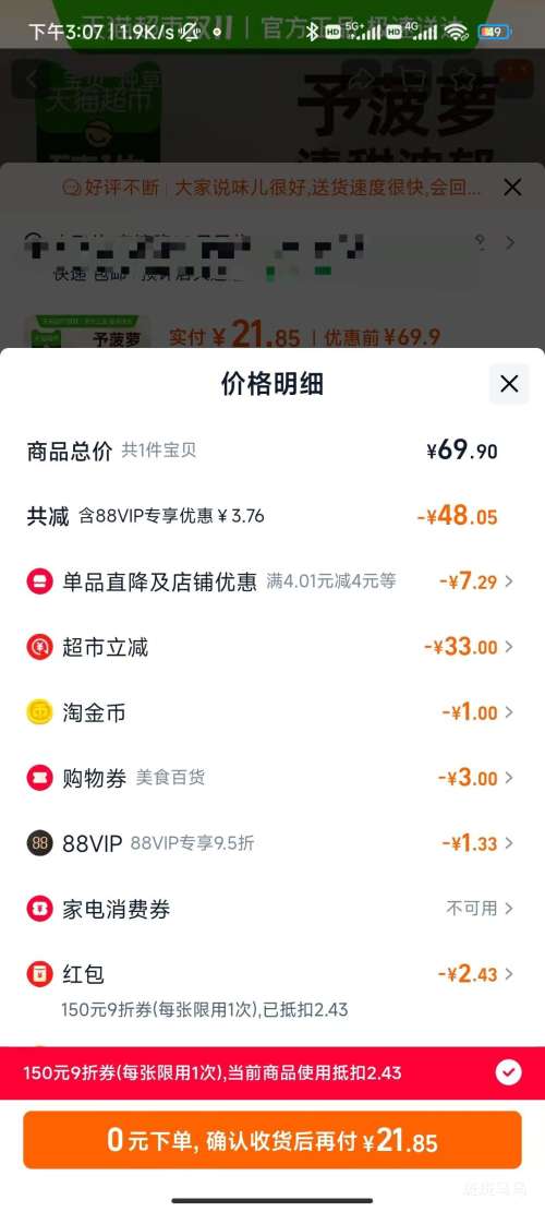 商品到手价15.46元(不叠品牌金18.46元 ),根据小编提供的优惠信息(优惠券+88vip双11无门槛9折 开门红消费券 至高抵(150/500)),下单1件。好价不错过,感兴趣的朋友可以试试!