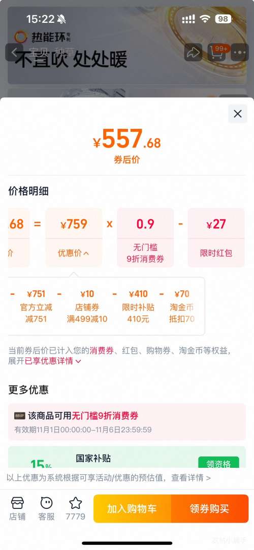 商品到手价560.64元+7000淘金币(需领券),根据小编提供的优惠信息(优惠券+满299减5+88vip双11无门槛9折 开门红消费券 至高抵(150/500)+家装家纺-政府补贴15%/20%--部分地区可领+百亿补贴金刚券-9折/8折+如何使用淘金币抵扣),下单1件。好价不错过,感兴趣的朋友可以试试!