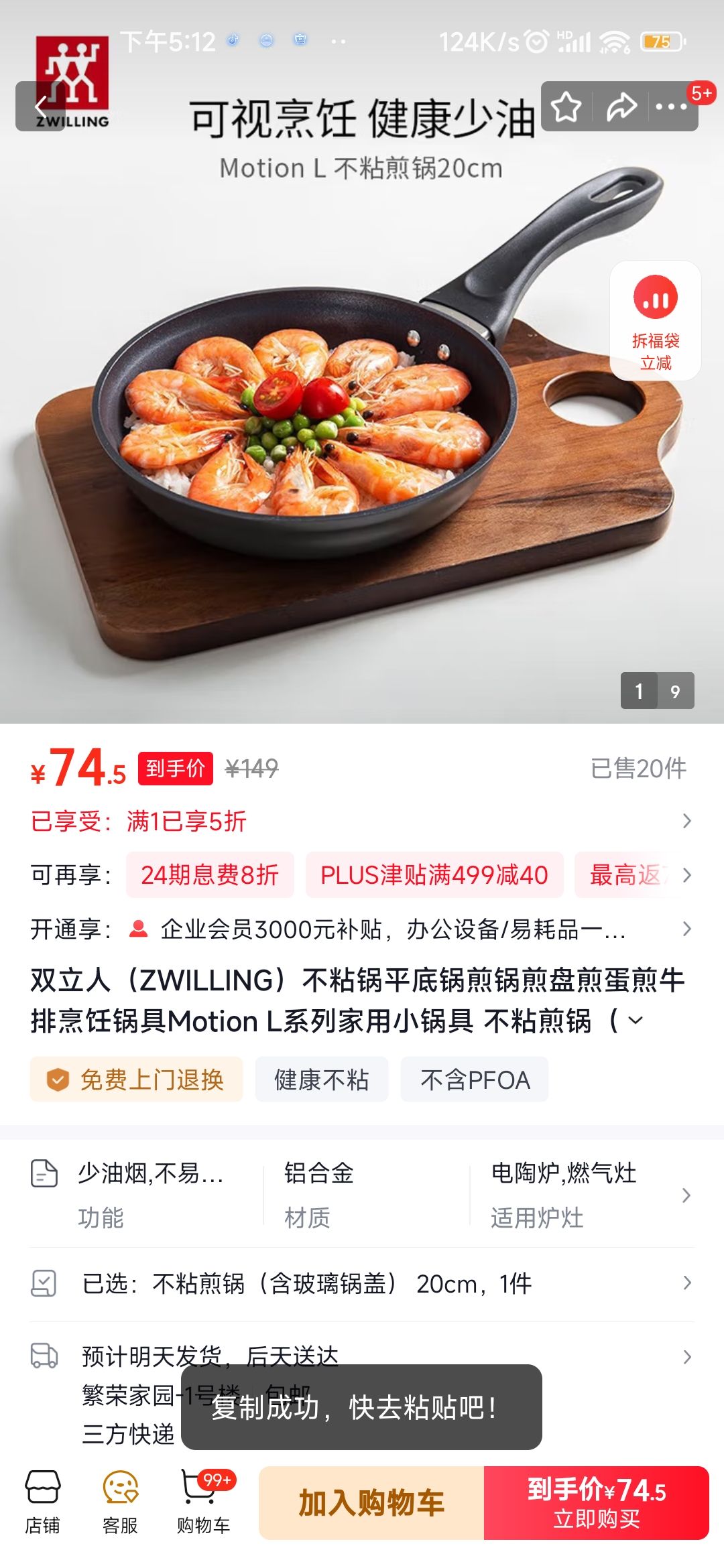 商品到手价74.5元,根据小编提供的优惠信息(满1件打5折+慢津贴1元),下单1件。好价不错过,感兴趣的朋友可以试试!
