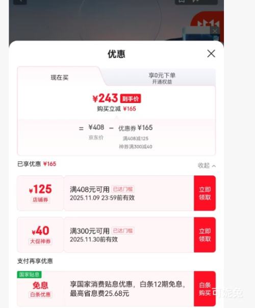 商品到手价243元,根据小编提供的优惠信息(满300减40+慢津贴1元),下单1件。好价不错过,感兴趣的朋友可以试试!