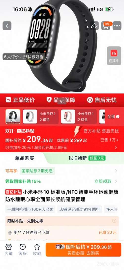 商品到手价209.36元(需领券),根据小编提供的优惠信息(优惠券+88vip双11无门槛9折 开门红消费券 至高抵(150/500)+手机&平板&电脑&穿戴-政府补贴15%/20%-部分地区可领+如何使用淘金币抵扣+百亿补贴金刚券-9折/8折),下单1件。好价不错过,感兴趣的朋友可以试试!