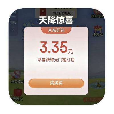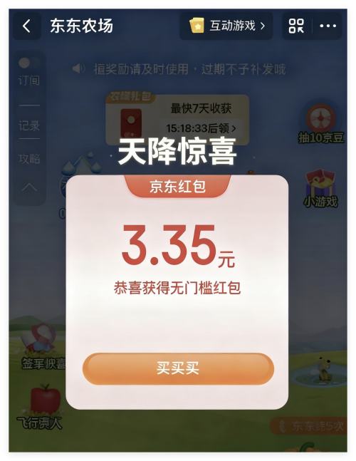 京东商城 东东农场 弹窗随机红包|实测3.35元无门槛红包
