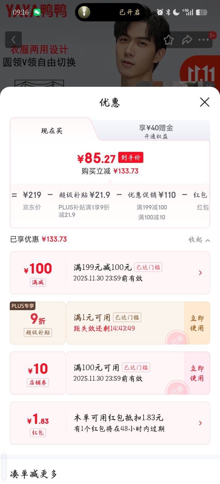 商品到手价87.1元(需领券),根据小编提供的优惠信息(满100减10),下单1件。好价不错过,感兴趣的朋友可以试试!