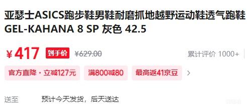 商品到手价417元,根据小编提供的优惠信息(满600减50+满1元,打9折),下单1件。好价不错过,感兴趣的朋友可以试试!