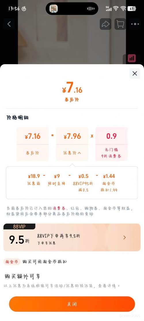 商品到手价4.17元(需福利礼金,返超市卡2元),根据小编提供的优惠信息(优惠券+88vip双11无门槛9折 开门红消费券 至高抵(50/200/500)+如何使用淘金币抵扣1.44元),下单1件。好价不错过,感兴趣的朋友可以试试!