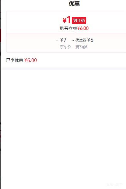 商品到手价1元(需领券),根据小编提供的优惠信息(7-6),下单1件。好价不错过,感兴趣的朋友可以试试!