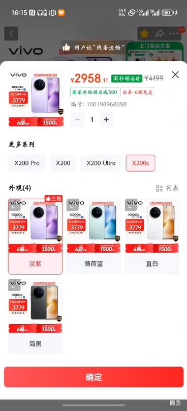 商品到手价3108.11元(其他颜色2958.11元),根据小编提供的优惠信息(plus超级补贴 限时加码9折券 至高抵(150/500 )+手机国补-沪鄂粤湘云川黑琼陕晋蒙厦门立减15%(至高500)+京东 plus 双11 1111元超级补贴 (500-50/1111-111/1500-150/3000-300/5000-500元)+直播间300元券),下单1件。好价不错过,感兴趣的朋友可以试试!
