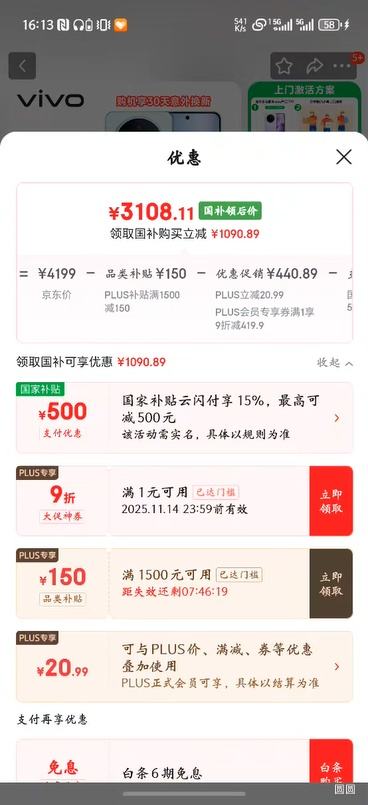 plus超级补贴 限时加码9折券 至高抵(150/500 )