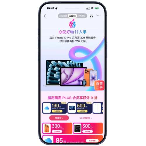 京东商城 APPLE会场 会员日新增500元专享券|以旧换新再补500元起