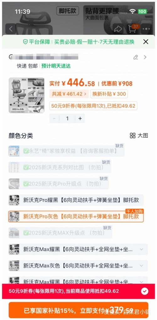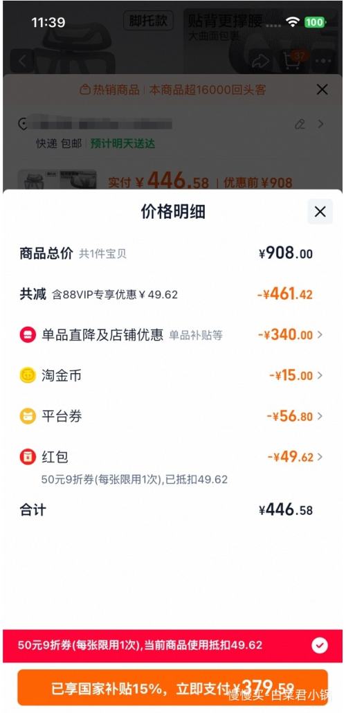 商品到手价返后369.59元+1500淘金币(晒单返10元红包)(需用券),根据小编提供的优惠信息(88vip双11无门槛9折 开门红消费券 至高抵(50/200/500)+家装家纺-政府补贴15%/20%--部分地区可领+需叠加百亿补贴金刚券-9折+慢津贴1.28元),下单1件。好价不错过,感兴趣的朋友可以试试!