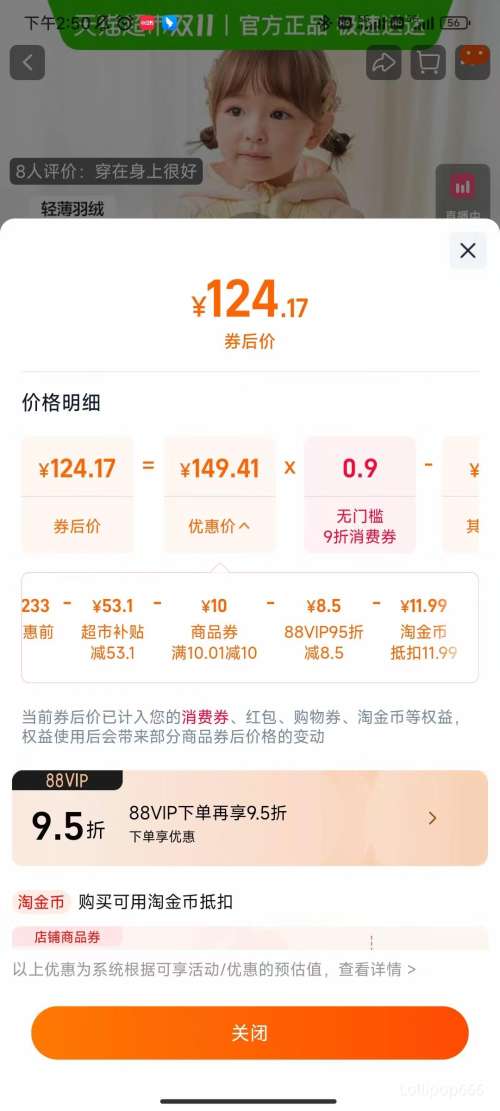 商品到手价106.48元+11.99元淘金币,根据小编提供的优惠信息(优惠券+88vip双11无门槛9折 开门红消费券 至高抵(50/200/500)),下单1件。好价不错过,感兴趣的朋友可以试试!