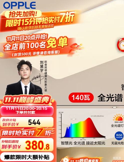京东自营20点开始、PLUS会员:OPPLE 欧普 MX9060-D130WLTT 全光谱护眼吸顶灯