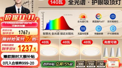 京东自营20点开始、PLUS会员:OPPLE 欧普 MX9060-D140WLTT-01 全光谱护眼吸顶灯套餐 包安装
