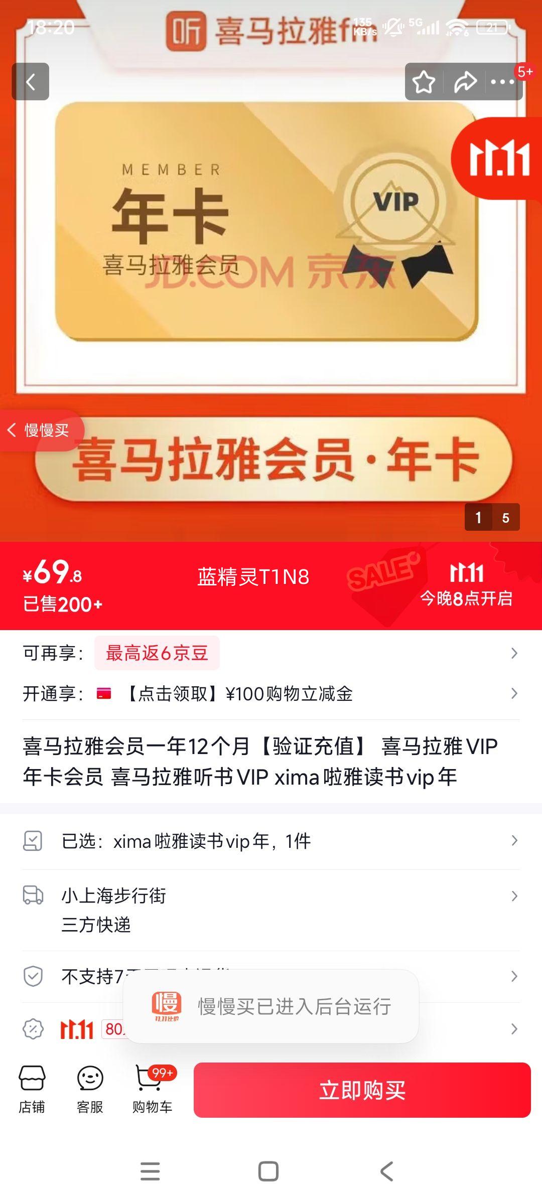 喜马拉雅 VIP 年卡会员 12个月 听书读书特权 全年畅听