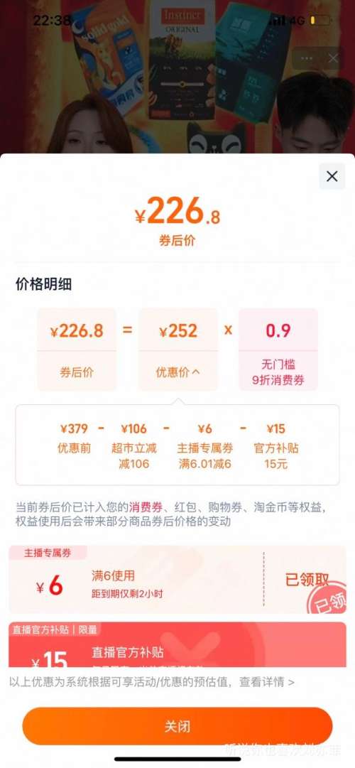 商品到手价226.8元,根据小编提供的优惠信息(优惠券+88vip双11无门槛9折 开门红消费券 至高抵(50/200/500)+慢津贴1元),下单1件。好价不错过,感兴趣的朋友可以试试!