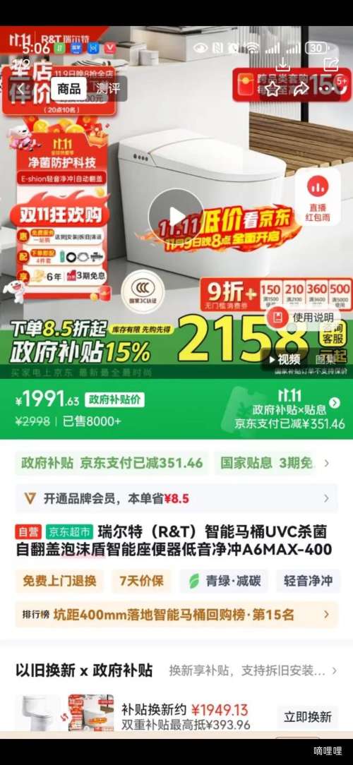 商品到手价1991.63元,根据小编提供的优惠信息(满1元打9折+京东 双11超级惊喜红包 200-20*6张+plus超级补贴 限时加码9折券 至高抵(150/500 )+家装厨卫适老化-国补至高30%),下单1件。好价不错过,感兴趣的朋友可以试试!