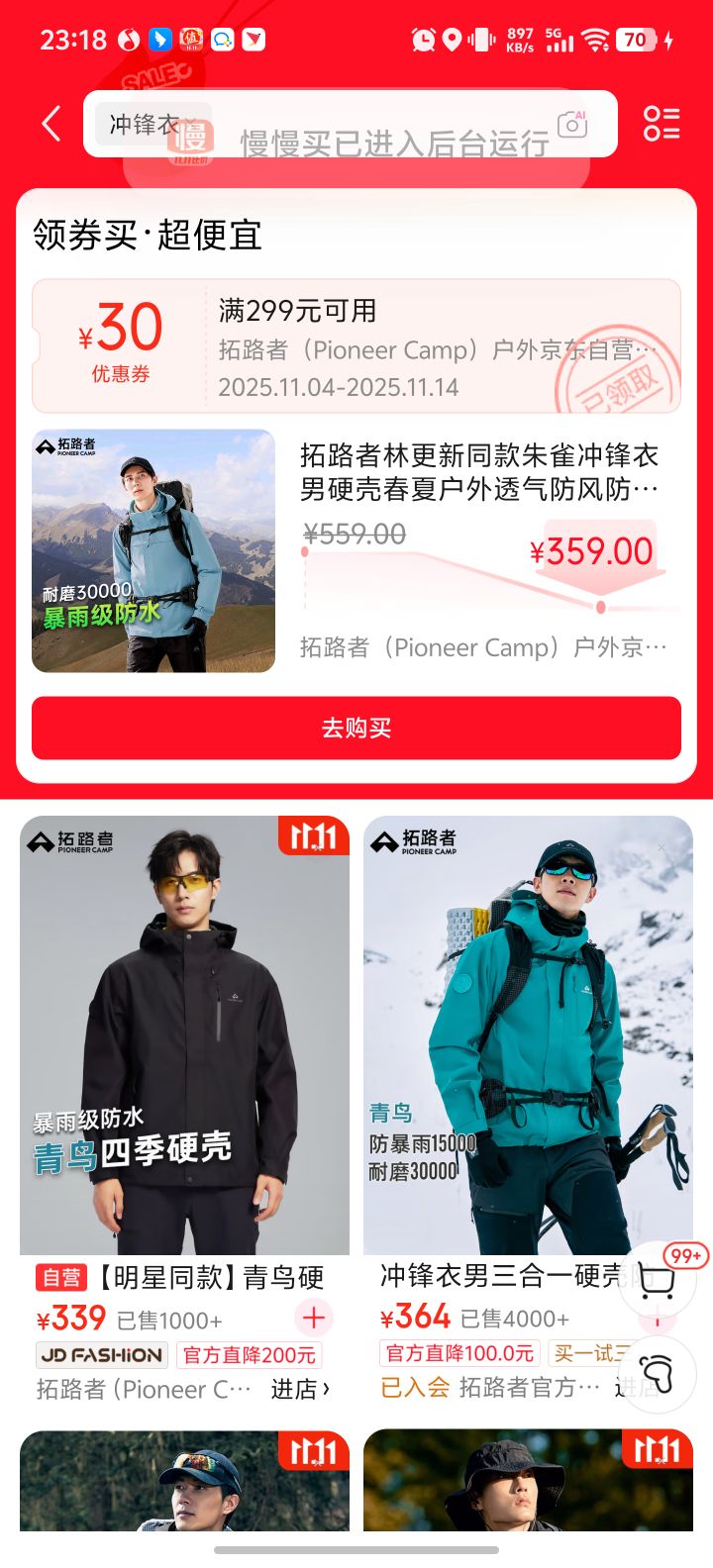 京东自营拓路者林更新同款朱雀冲锋衣男硬壳春夏户外透气防风防水外套徒步登山服