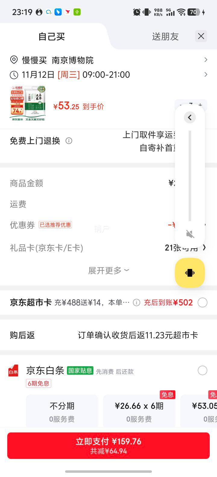商品到手价148.53元(需领券,返超市卡11.23元,合49.51元/件),根据小编提供的优惠信息(满1元,打8折+京东 双11超级惊喜红包 200-20*6张),下单3件。好价不错过,感兴趣的朋友可以试试!