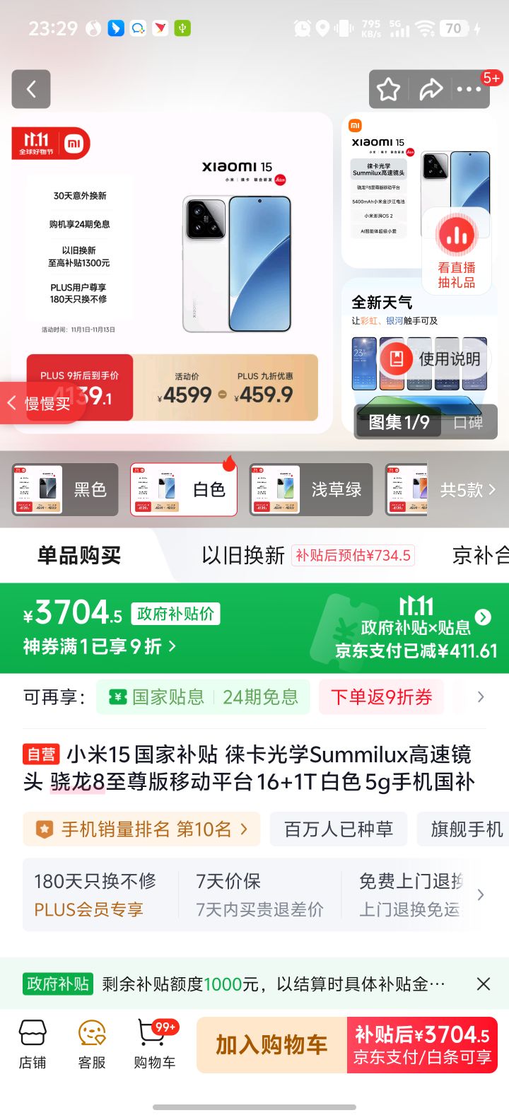 商品到手价3704.5元(需领券),根据小编提供的优惠信息(满1元,打9折),下单1件。好价不错过,感兴趣的朋友可以试试!