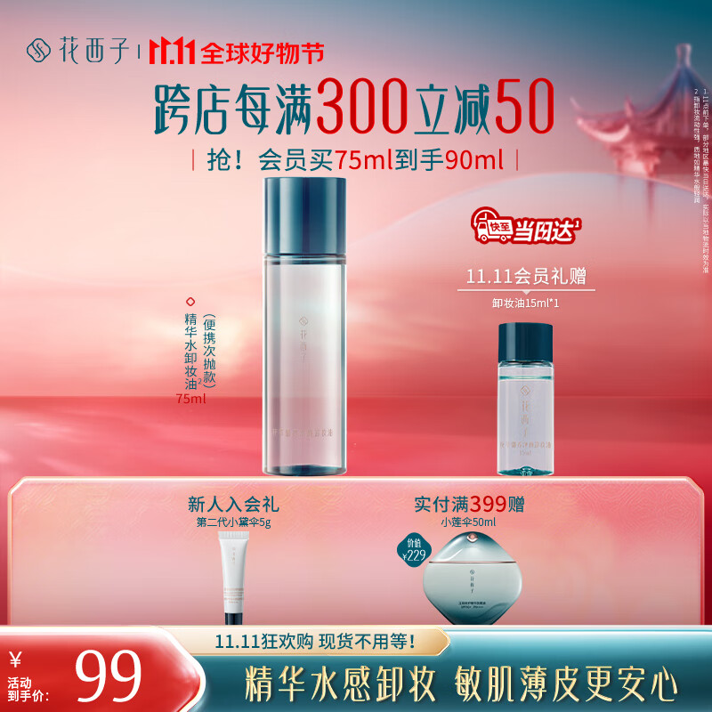 京东自营花西子【双11现货速抢】精华水卸妆油75ml温和清洁敏感肌卸妆差旅便携