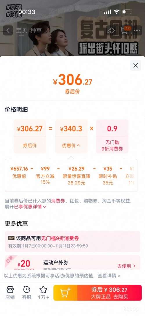 商品到手价236.64元包邮+6.57元淘金币(需领券),根据小编提供的优惠信息(优惠券+88vip双11无门槛9折 开门红消费券 至高抵(50/200/500)+如何使用淘金币抵扣+满600-40/900-70元+69.63元淘礼金),下单1件。好价不错过,感兴趣的朋友可以试试!
