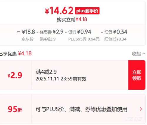商品到手价14.96元(需领券),根据小编提供的优惠信息(满4减2.9),下单1件。好价不错过,感兴趣的朋友可以试试!