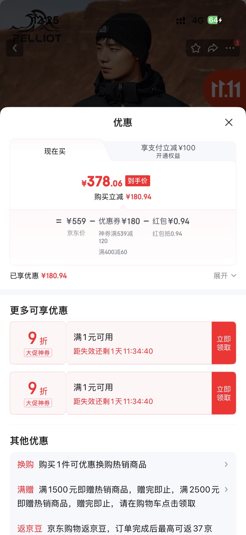 商品到手价379元(需领券),根据小编提供的优惠信息(满400减60+满539元减120元+慢津贴2.27元),下单1件。好价不错过,感兴趣的朋友可以试试!