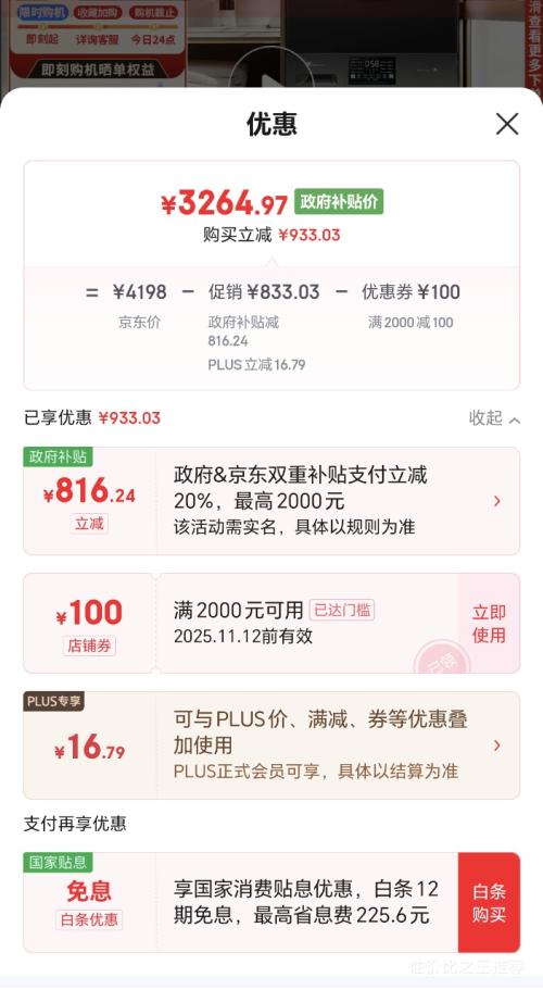商品到手价3264.97元(需领券),根据小编提供的优惠信息(满500减100+满1元,打9折+家电-政府补贴15%/20%-部分地区可领+慢津贴16.77元),下单1件。好价不错过,感兴趣的朋友可以试试!