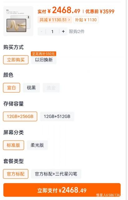 商品到手价2469元,根据小编提供的优惠信息(优惠券+百亿补贴金刚券-9折/8折+慢津贴1元),下单1件。好价不错过,感兴趣的朋友可以试试!