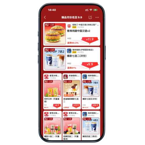 促销活动:京东外卖 爆品双份9.9元 蜜雪冰城4.9元双杯起