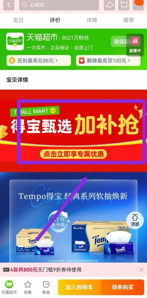 天猫超市【下拉详情享优惠】得宝软抽经典无香4层抽纸90抽*36包