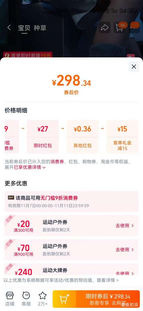 商品到手价251.72元+1000淘金币(需领券、需首购),根据小编提供的优惠信息(优惠券+满500减50+每日10点73.62礼金+运动户外600-40券+88vip双11无门槛9折 开门红消费券 至高抵(50/200/500)+如何使用淘金币抵扣),下单1件。好价不错过,感兴趣的朋友可以试试!