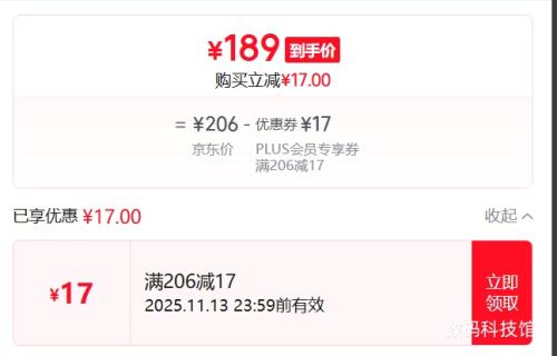 商品到手价189元(需领券),根据小编提供的优惠信息(满186减10),下单1件。好价不错过,感兴趣的朋友可以试试!