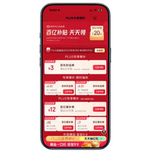 京东外卖 外卖福利 领40元餐补红包|1元外卖支付券