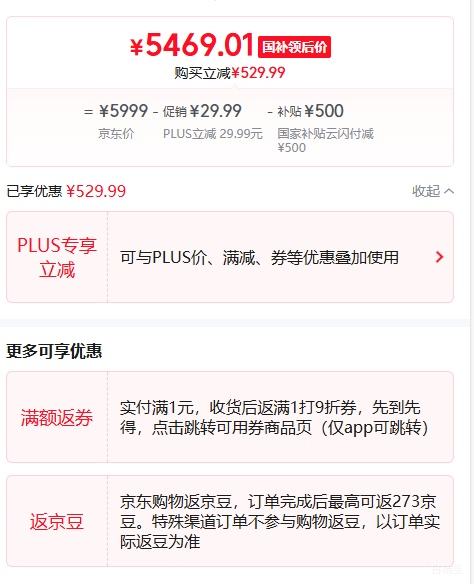 商品到手价5469.01元,根据小编提供的优惠信息(3C-政府补贴15%/20%--部分地区可领),下单1件。好价不错过,感兴趣的朋友可以试试!