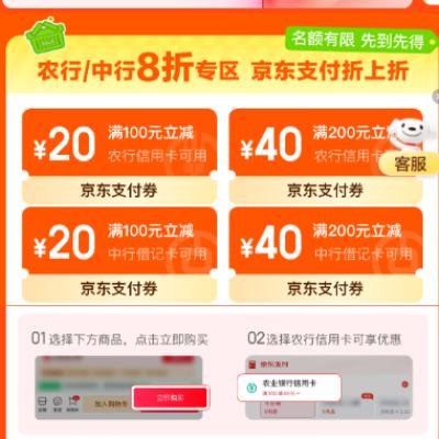 促销活动:京东 京东支付会场 领200-40元京东支付券