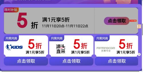 11日20点、促销活动:京东 新增限时补贴 服装真5折会场