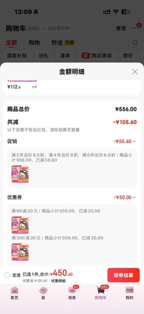 商品到手价450.4元(需购4件,合112.60元/件),根据小编提供的优惠信息(慢津贴1元),下单4件。好价不错过,感兴趣的朋友可以试试!