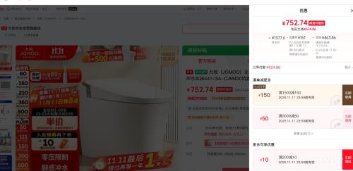 商品到手价718.7元(需领券),根据小编提供的优惠信息(600-60+家装厨卫适老化-国补至高30%+京东 plus 双11 1111元超级补贴 (500-50/1111-111/1500-150/3000-300/5000-500元)+1000-30+如何找到商品京东秒杀价),下单1件。好价不错过,感兴趣的朋友可以试试!