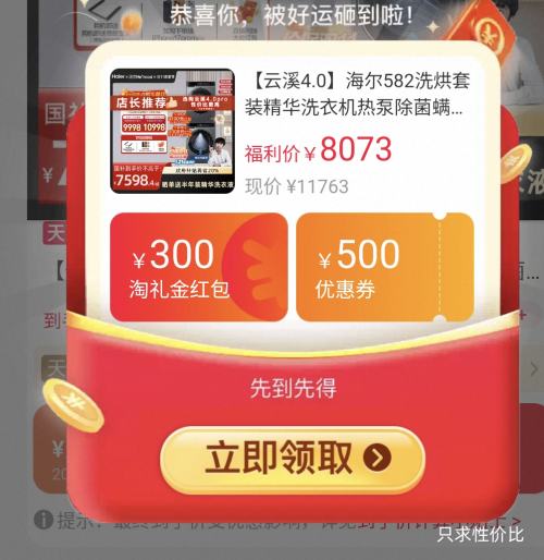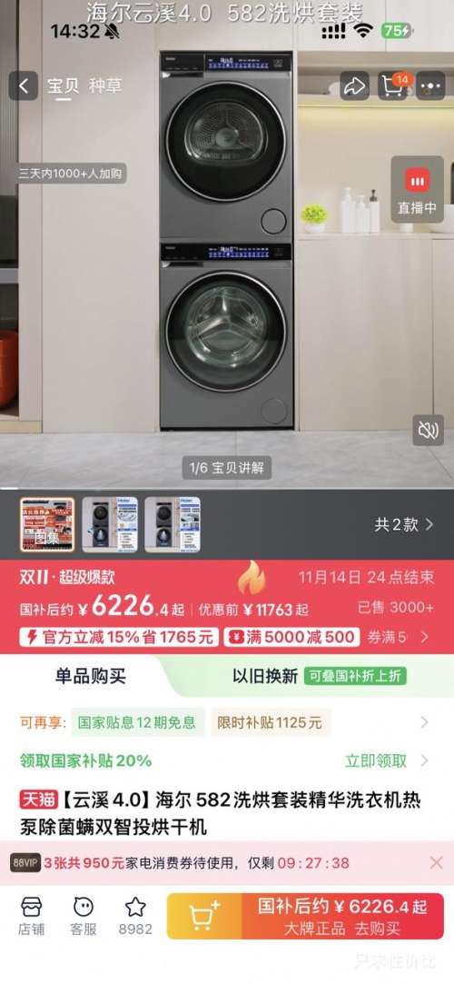 商品到手价5686.4元(需领券、返300元),根据小编提供的优惠信息(优惠券+满501减500+家电-政府补贴15%/20%--部分地区可领+如何使用淘金币 抵扣90+88vip 专享家电消费券 (1500-150/3000-300/5000-500)),下单1件。好价不错过,感兴趣的朋友可以试试!