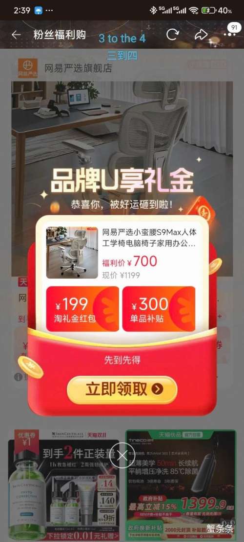 天猫旗舰店再降价、88VIP、限地区、天降礼金:网易严选小蛮腰 S9Max人体工学椅 电竞椅 云白 无脚踏