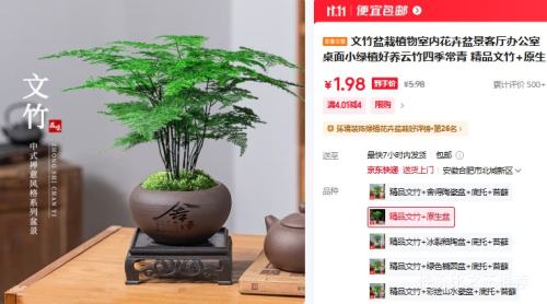 再降价:文竹盆栽植物 好养云竹四季常青 精品文竹+原生盆