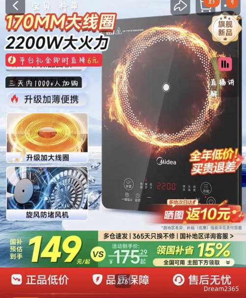 2200W猛火,爆炒不等待。170mm加大线圈,加热面积提升29%。