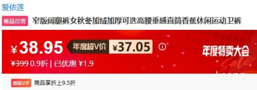 唯品会超V会员:AiYiLian 爱依莲 窄版阔腿裤女 秋冬加绒加厚款