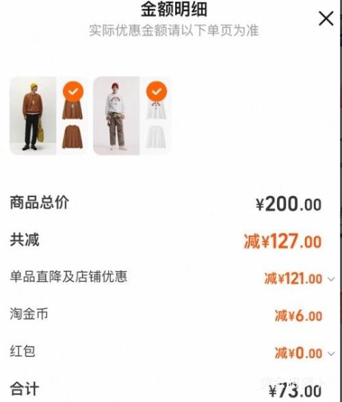 商品到手价73元(合36.50元/件),根据小编提供的优惠信息(优惠券+满100减51+如何使用淘金币抵扣),下单2件。好价不错过,感兴趣的朋友可以试试!